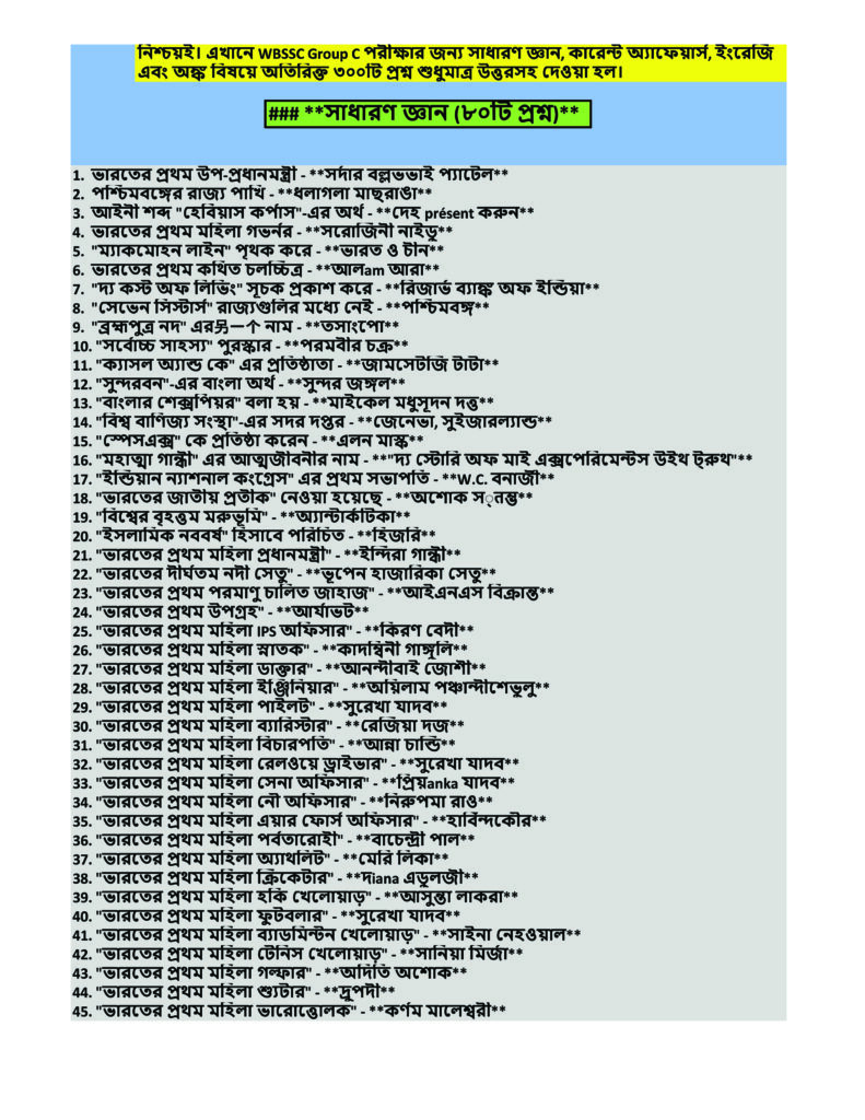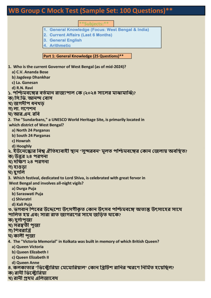 এই ফাইলটি শুধুমাত্র একটি প্রস্তুতি গাইড নয়, বরং WBSSC গ্রুপ C ও D পরীক্ষায় সফলতার লক্ষ্যে আপনার নির্ভরযোগ্য সহযাত্রী। প্রতিযোগিতায় এগিয়ে থাকতে এখনই সংগ্রহ করুন এই ফাইলটি এবং আপনার প্রস্তুতিকে আরও এক ধাপ এগিয়ে নিয়ে যান!